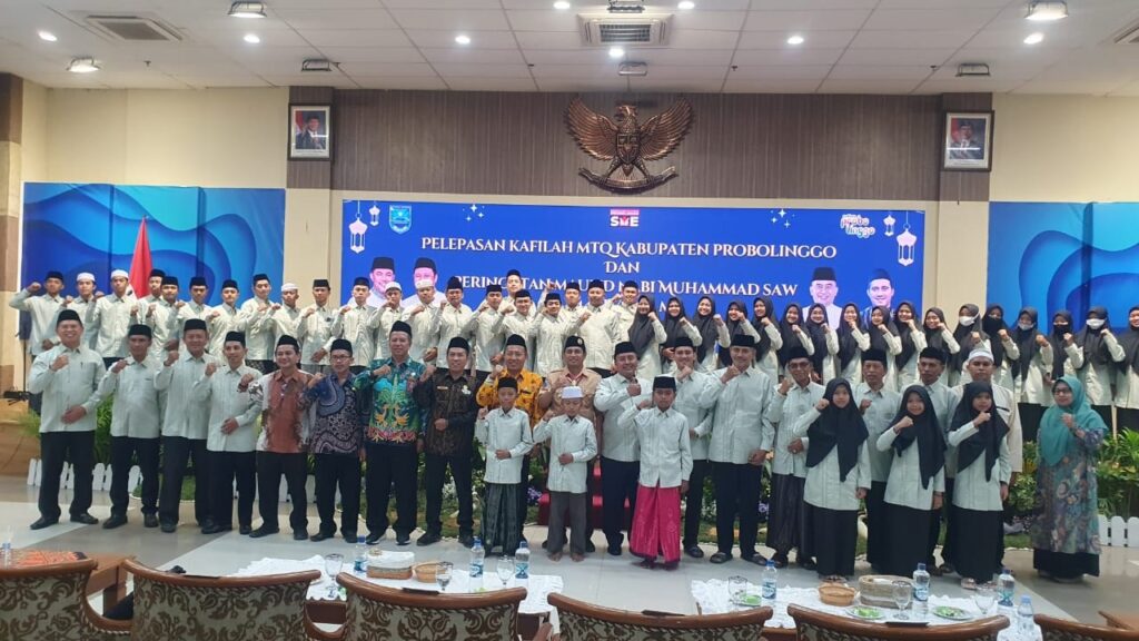 GHANDEWA.News, Probolinggo, – Pemerintah Kabupaten Probolinggo melalui kerja sama dengan Kementerian Agama Kabupaten Probolinggo dan Jam’iyyatul Qurra’ wal Huffazh (JAMQUR), menggelar acara peringatan Maulid Nabi Muhammad SAW yang dirangkaikan dengan pelepasan kontingen peserta Musabaqah Tilawatil Qur’an (MTQ) Kabupaten Probolinggo menuju MTQ Tingkat Provinsi Jawa Timur di Kabupaten Jember.